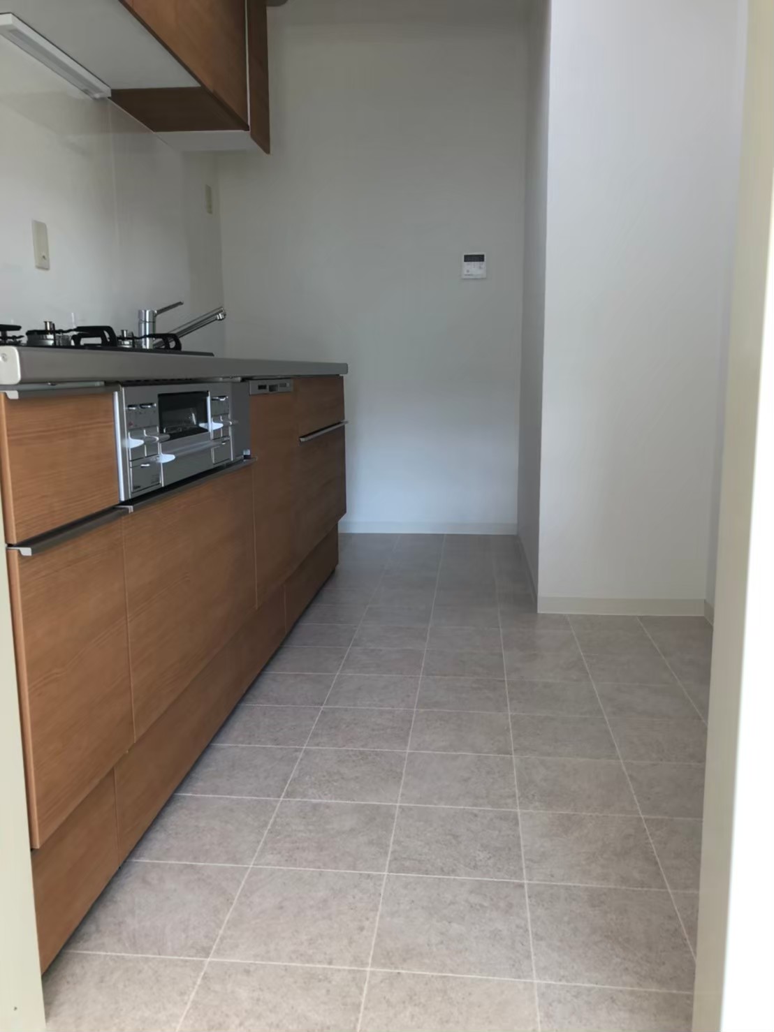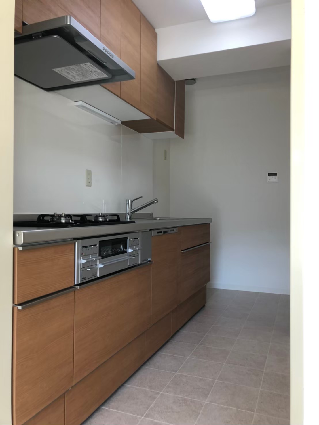 独立のキッチンえす。壁付けのよくあるマンションのキッチンの背景