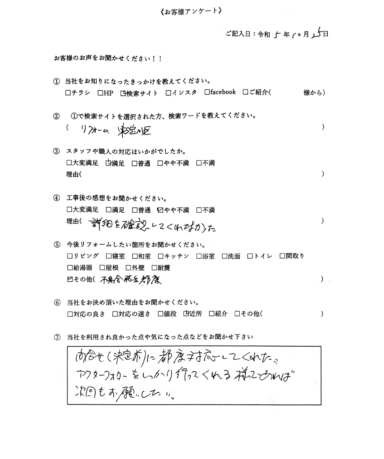 NOV 30 2023 お客様の声 トイレ交換と壁・床のリフォームをさせていただきました 内装工事/大阪市東淀川区/M様 一戸建てのトイレを交換リフォームさせていただきました。 1階と2階、壁紙と床も交換させていただきました。 工事完了写真 Post Share Hatena Pocket RSS feedly Pin it 投稿者: classcreateお客様の声コメント: 0 事務所の天井材補修・塗装をさせてい... 『店舗 内装改装工事』大阪市東淀川...